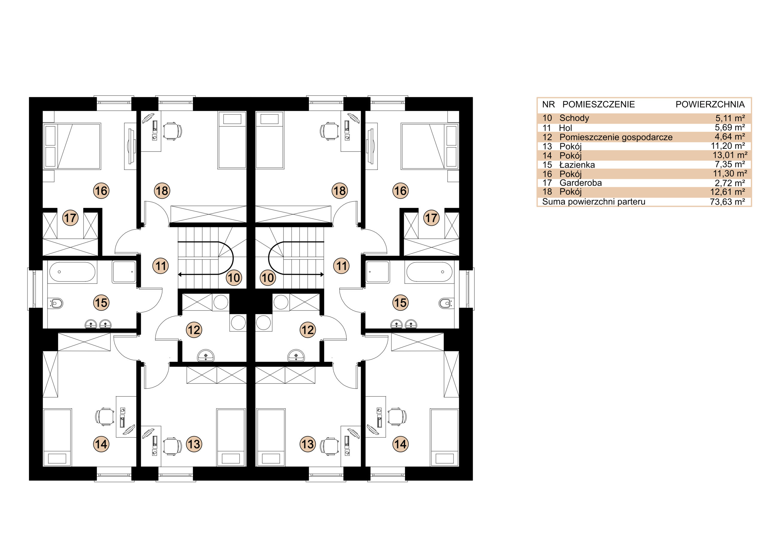 W ramach inwestycji zostanie oddanych do użytku 4 domów w zabudowie bliźniaczej, w których każdy ma powierzchnię wynoszącą 140.81 m2 oraz dostęp do własnego ogródka. Wszystkie lokale w stanie deweloperskim zostaną wyposażone w ogrzewanie gazowe oraz będą dostosowane do montażu klimatyzacji, w celu zagwarantowania jak najwygodniejszego użytkowania.